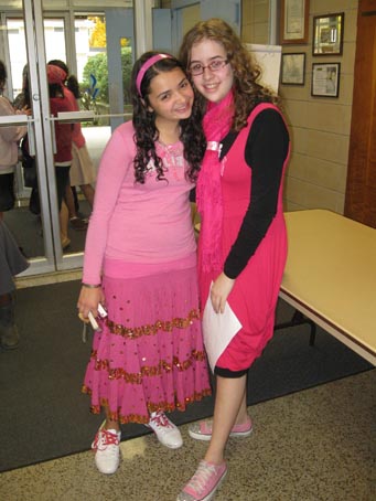 Kudos to juniors Michal Kupchik and Allison Rumelt for organizing this year’s successful “Pretty in Pink Day,” Central’s annual salute to National Breast Cancer Awareness Month. First introduced at YUHSG by our alumna Rachel Schwartz (‘08), it has become a valuable and admired tradition, with informational programming and fund-raising on behalf of “Sharsheret ,” the national organization dedicated to addressing the unique concerns of young Jewish women